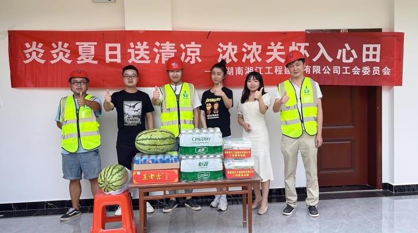 8月2日下午,湘江公司工會委員周思率工會工作人員前往長沙大托項目送去西瓜、藿香正氣水等降溫抗暑物資,在炎炎夏日為項目一線員工送去清涼和關(guān)懷。..
